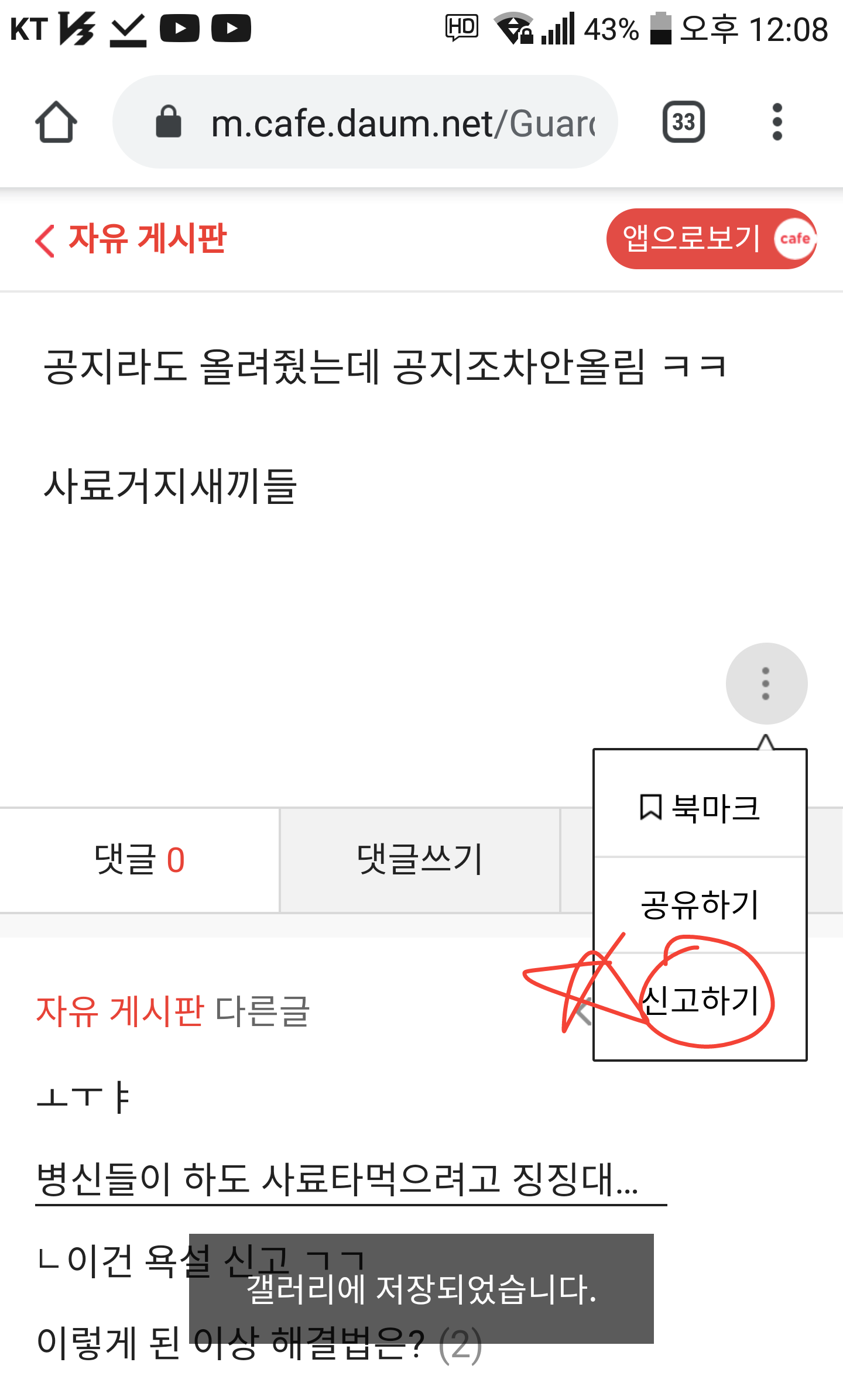이건 욕설 신고 ㄱㄱ 작성자해적왕 레이첼|작성시간20.09.07|조회수151 목록 댓글 0 글자크기 작게가 글자크기 크게가 ㅈㄱㄴ 다음검색 현재 게시글 추가 기능 열기 북마크 공유하기 신고 센터로 신고 댓글 댓글 0 댓글쓰기 답글쓰기 댓글 리스트
