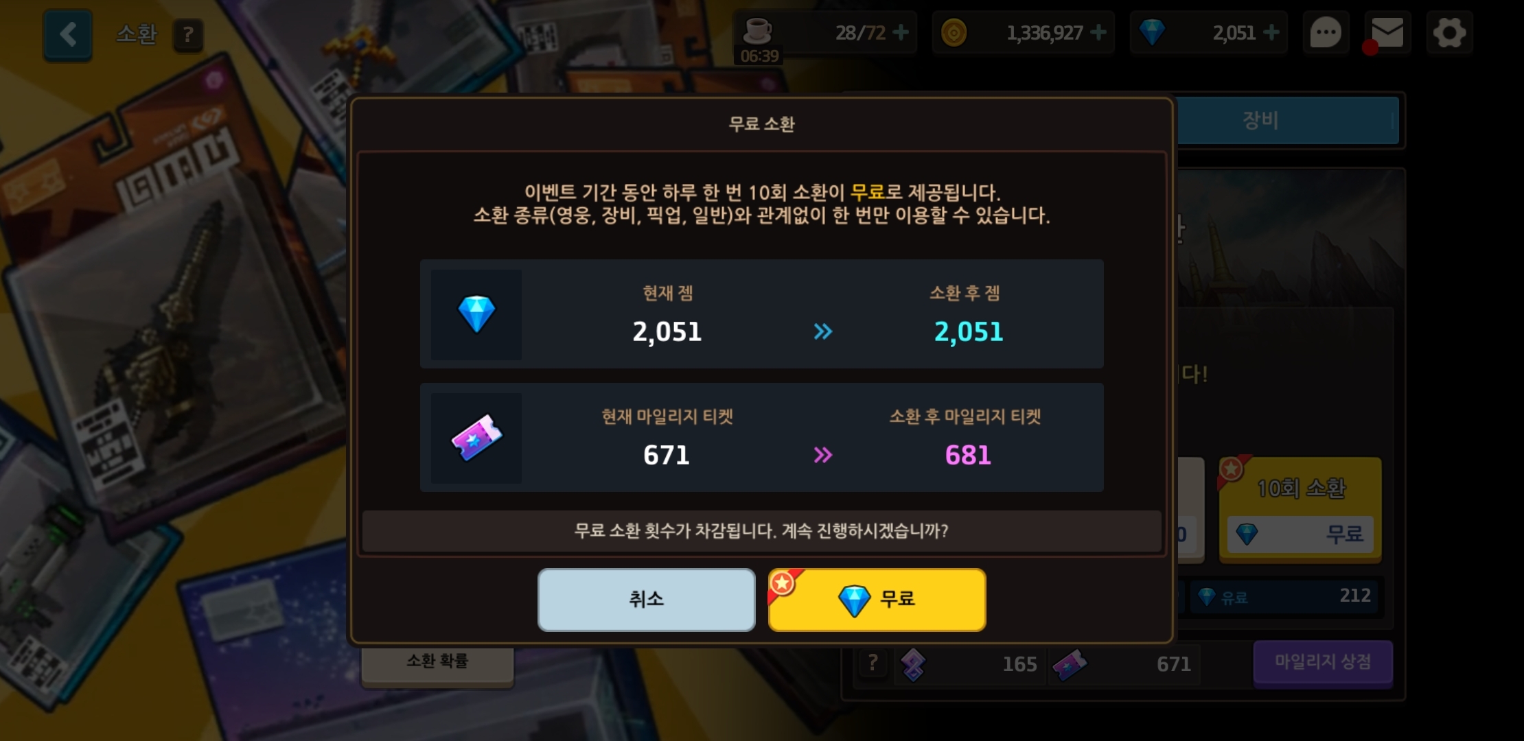 이벤트 기간동안 하루한번 이니까 매일 1회이지