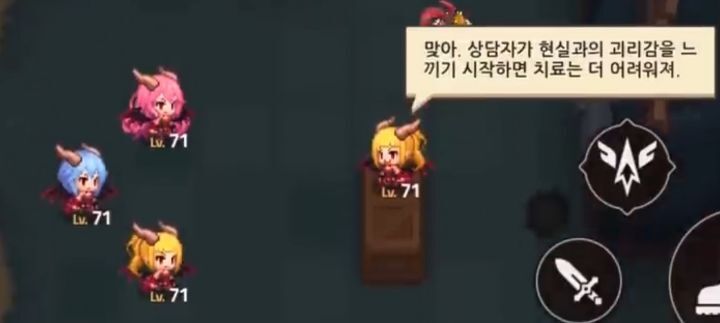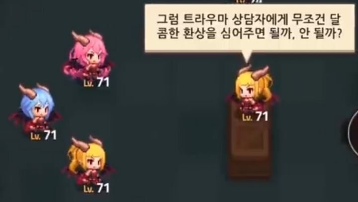 선배 서큐버스가 후배들에게 트라우마 상담자들에게 드림테라피를 할때 어떻게 해야하는지, 무엇을 하면 안되는지 교육하는 모습이다.