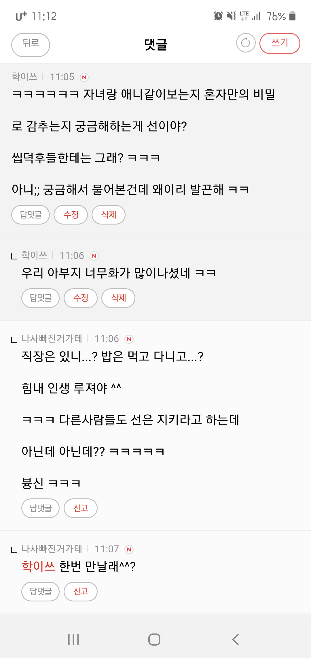 아 그리고 여러분들 내가시비먼저 건거아니고