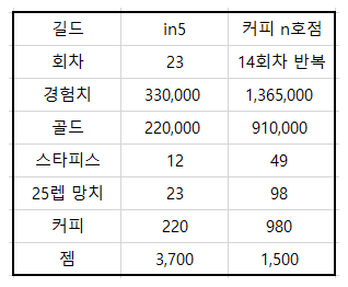 자 근데 5위안에 드는 길드가 5개밖에 없겠지 커피는 그냥 거진 2300~1500개 모든유저들이 받는다고 봐야됨