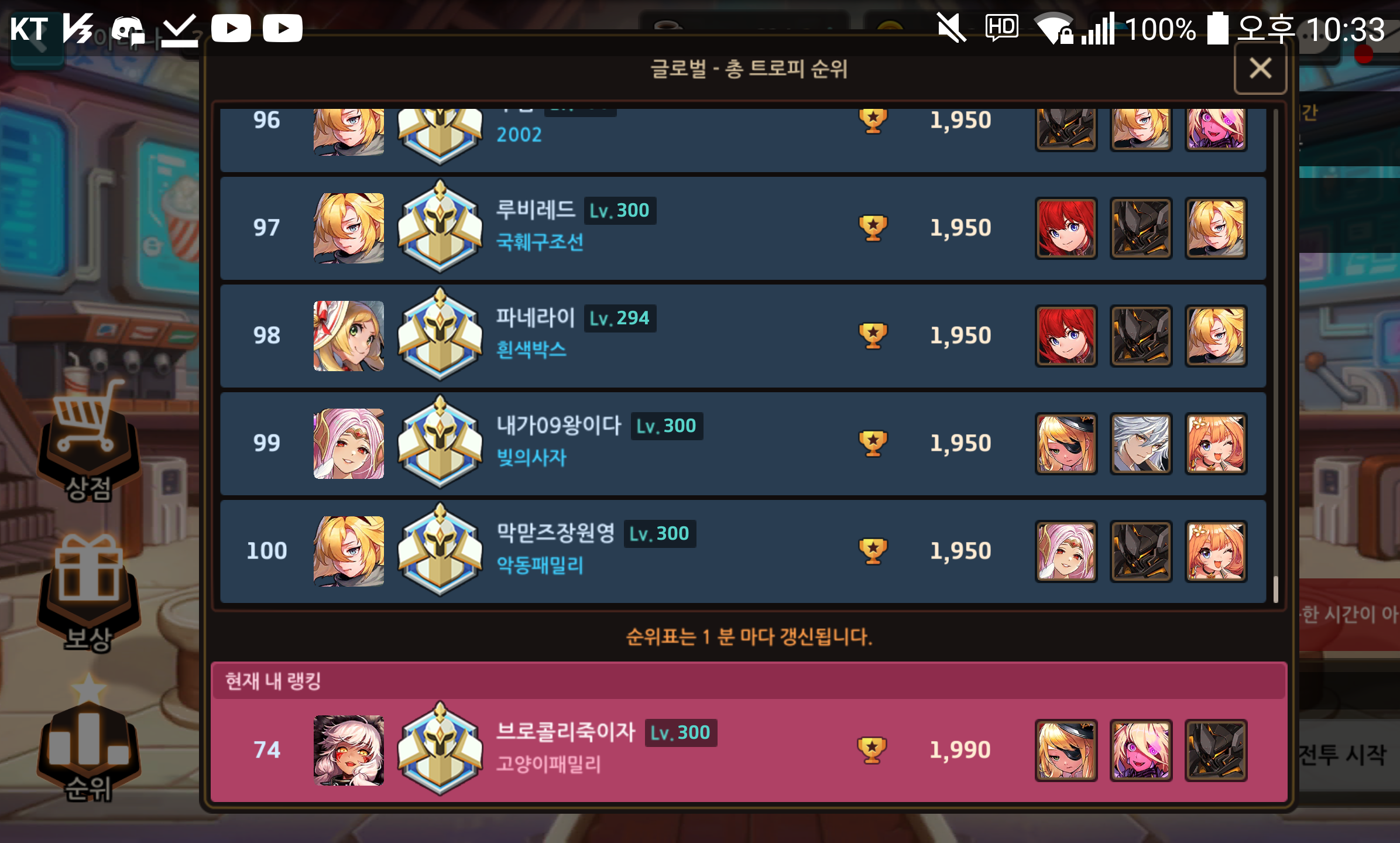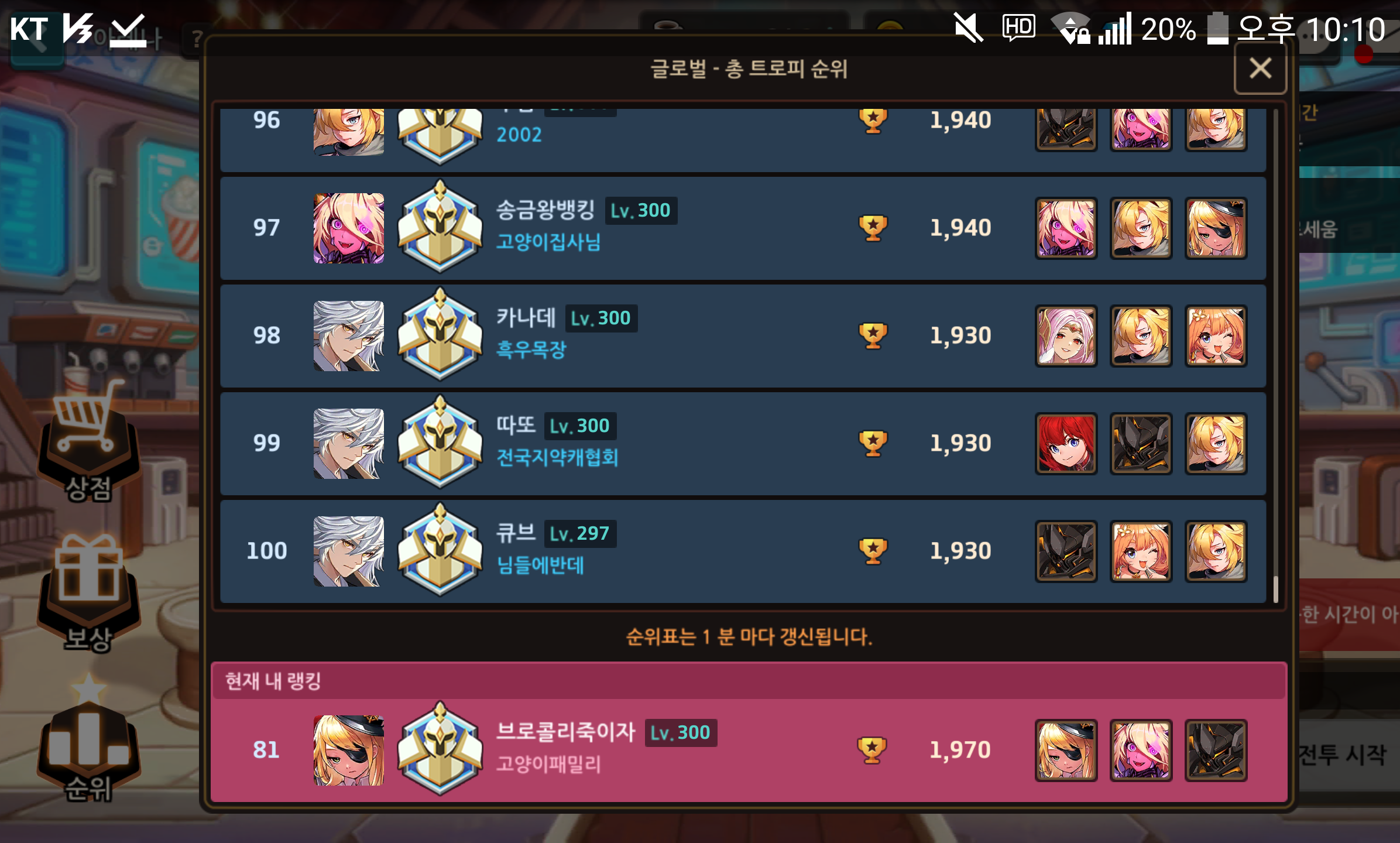 In 100 어예! 근데 아레나 in 100 컷 20점 낮아짐... 이건 처음인데?! 작성자해적왕 레이첼|작성시간21.01.31|조회수212 목록 댓글 11 글자크기 작게가 글자크기 크게가 이번주도 아슬아슬 in 100!근데 저번주 컷은 1950인데이번주는 1930이넹다들 협동전하느라 아레나 대충치는구나?저번주이번주 다음검색 현재 게시글 추가 기능 열기 북마크 공유하기 신고 센터로 신고 댓글 댓글 11 댓글쓰기 답글쓰기 댓글 리스트 답댓글 작성자해적왕 레이첼 작성자 본인 여부 작성자 | 작성시간 21.01.31 요히이 감사합니다! 이미지 확대 작성자샤로키 | 작성시간 21.01.31 9시 이전에 1950점 찍으면 확정적으로 들어가는 듯항상 저도 5판 돌려서 1950점 이상되면 주차해놔여 작성자란팡😘 | 작성시간 21.01.31 답댓글 작성자해적왕 레이첼 작성자 본인 여부 작성자 | 작성시간 21.01.31 감.. 감사합니다! 이미지 확대 작성자피이 | 작성시간 21.01.31 뭐야??? 공주들 저거 어케함?? 댓글 전체보기