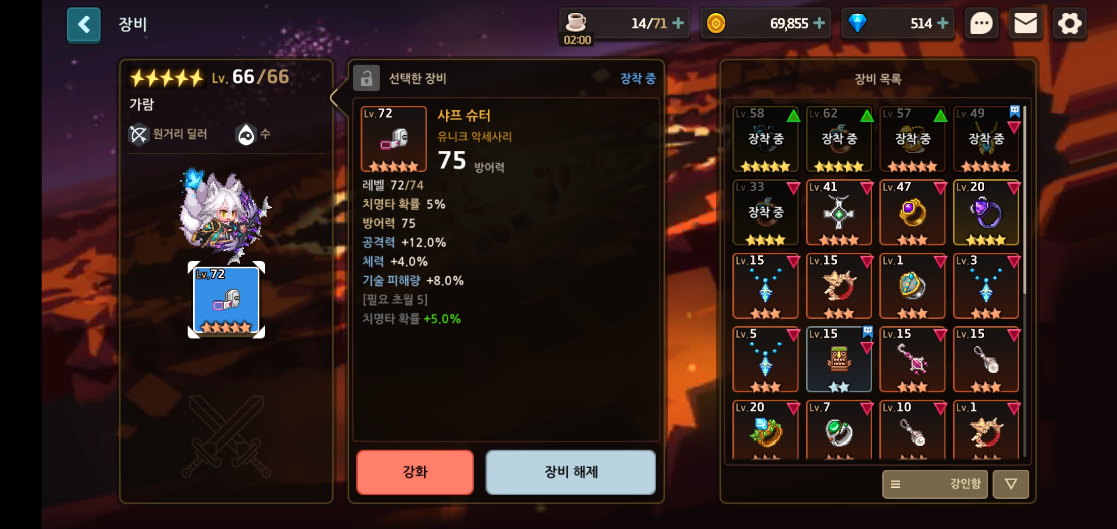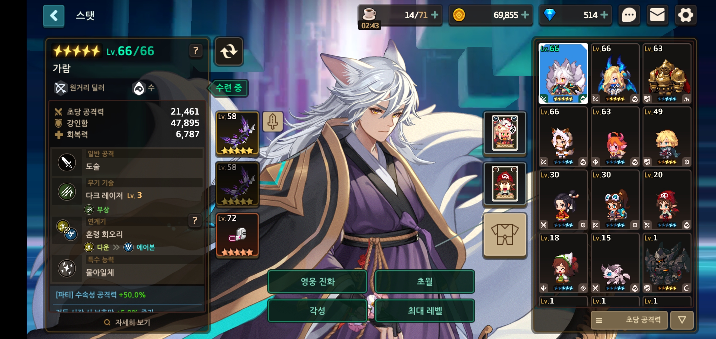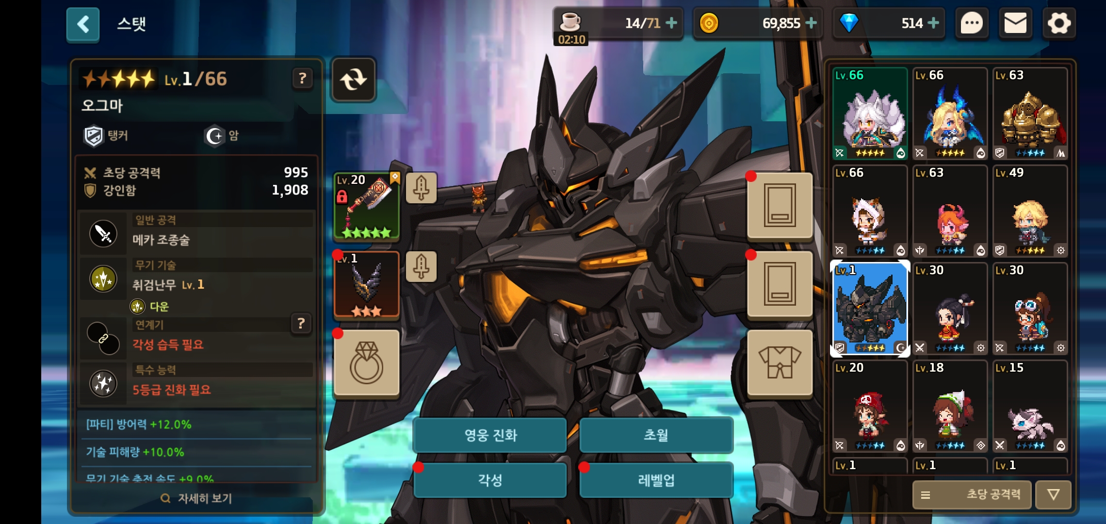 답댓글 작성자카시아스 작성시간 21.02.19 一편단心 하지만 정말 상황에 따라 다릅니다. 오그마는 딜이 거의 없는 퓨어탱커라 어떤곳은 쓰다보면 딜이 모자라서 못깨는 경우도 있습니다. 그럴때는 또 오그마를 빼고 해야하죠. 너무 많은걸 이야기 하긴 했지만 1순위 육성순서는 주딜러 입니다. 가람 육성하시면 됩니다. 히크는 진화석에 절대 쓰지마시고 나중에 초월할때 쓰세요.