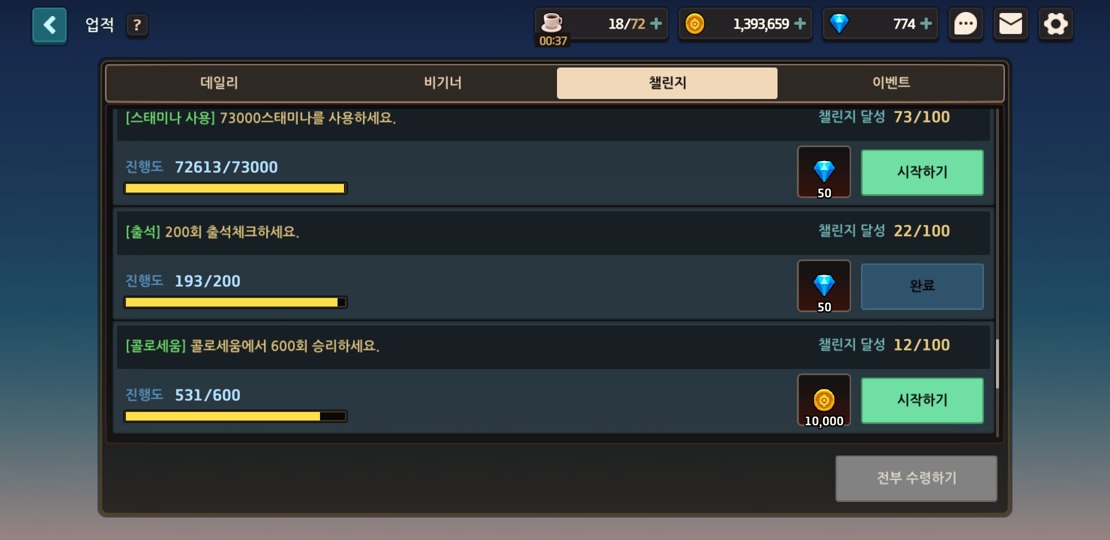 가테엔 1원도 쓰지 않은 묵묵히 즐기는 즐겜유저