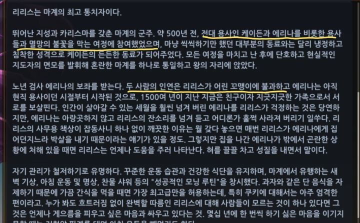 정황상 리리스 = 릴리스고 얘가 챔피언이라면