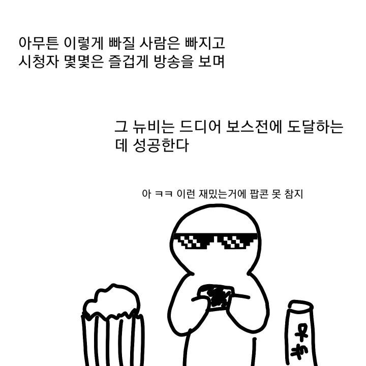 뭔가 시작은 했으니 끝은 꼭 보고 말겠다는 집녑으로 넋 놓고 꽤 오랜 시간 본 거 같은데 점차 시간 길어지고 멘탈 갈려나갈수록 점점 응원하게 됐습니다