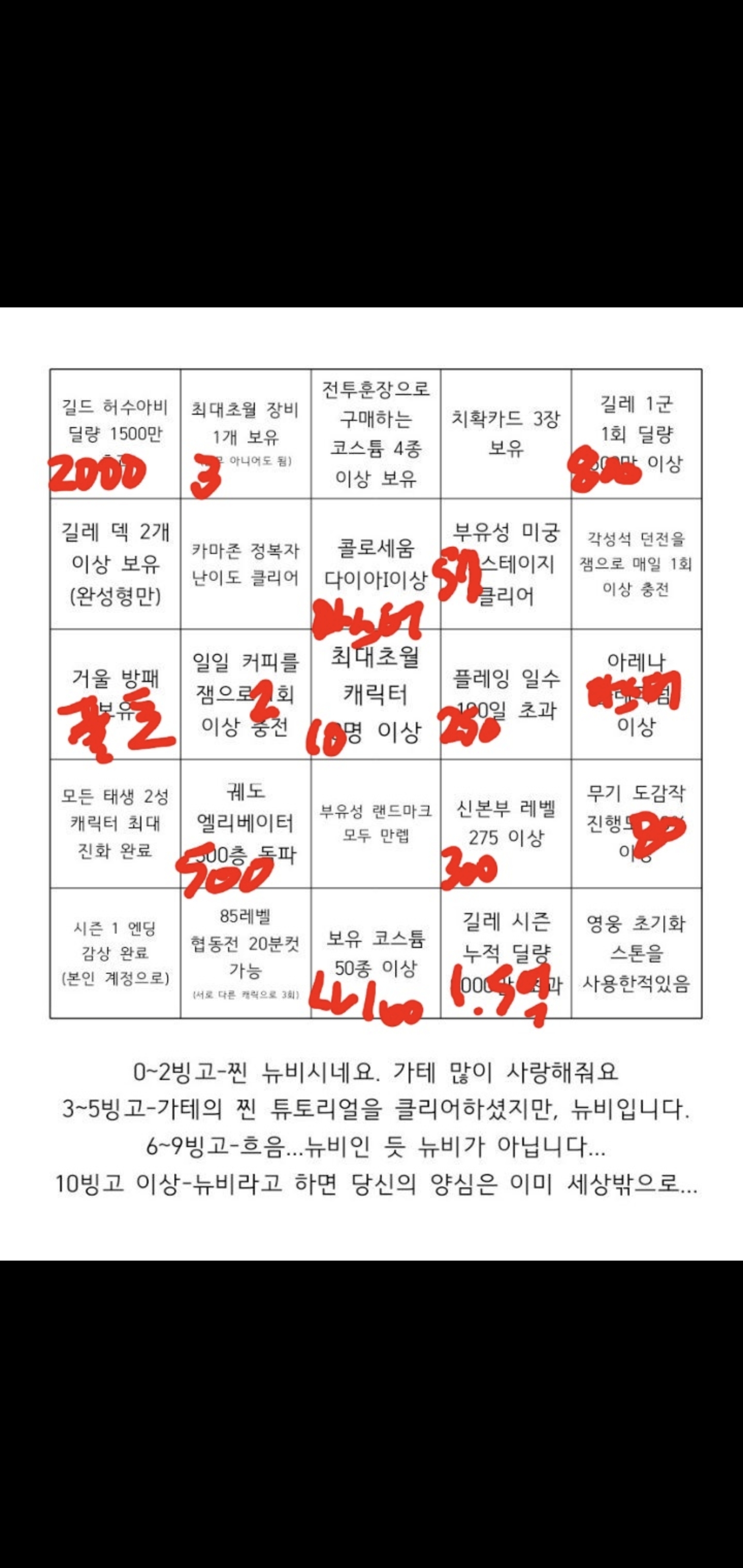 고인물 빙고판이 아니라 뉴비 판독 빙고판이 잖냐