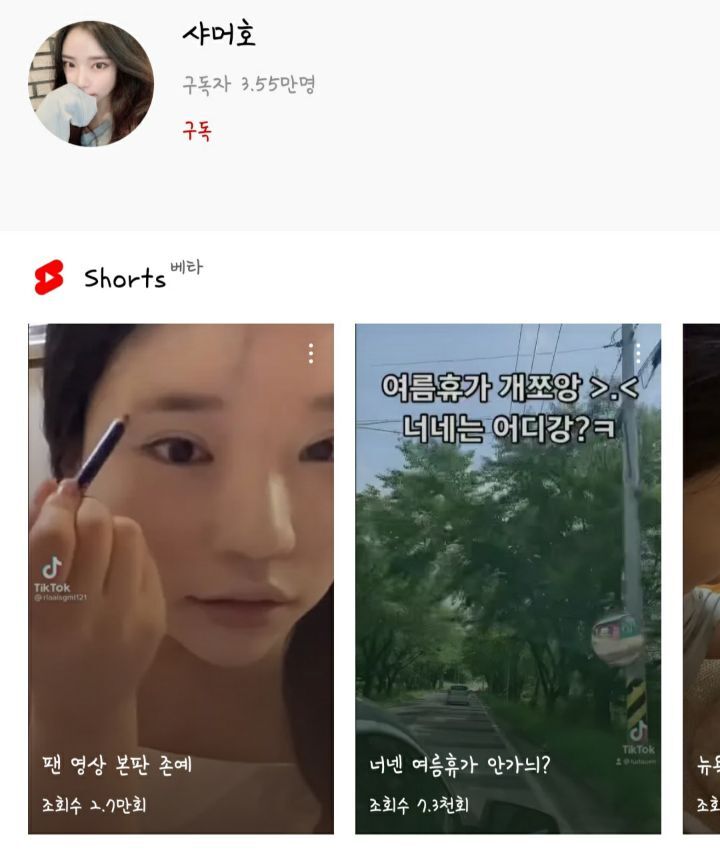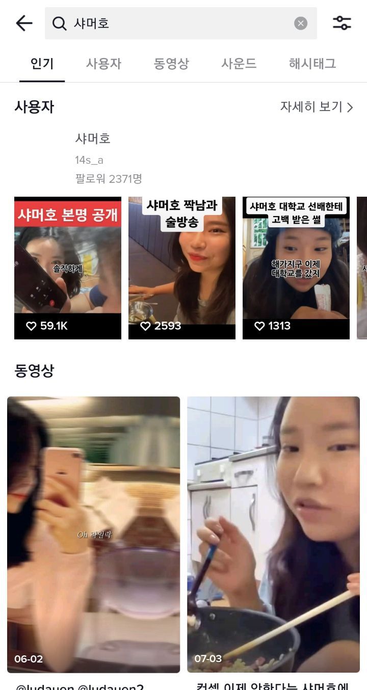 틱톡 닉네임은 샤머호라는 듯 하다.