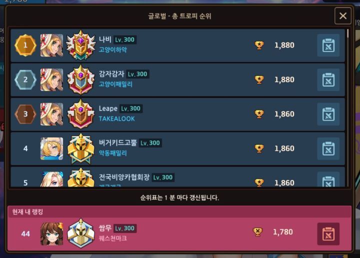 이 미친 순위.... 작성자쌈무 닉네임 쓰고싶|작성시간21.10.12|조회수169 목록 댓글 4 글자크기 작게가 글자크기 크게가 다섯분이 한마음으로 밀어올려준 말도 안 되는 순위 다음검색 현재 게시글 추가 기능 열기 북마크 공유하기 신고 센터로 신고 댓글 댓글 4 댓글쓰기 답글쓰기 댓글 리스트 작성자㈜감자감자 | 작성시간 21.10.12 맨위에 라피스 3명 뿌듯 답댓글 작성자쌈무 닉네임 쓰고싶 작성자 본인 여부 작성자 | 작성시간 21.10.12 이번 주에 콜로 같은 리그시더라구요. 살살 봐주십서 작성자수호신의꼬리들 | 작성시간 21.10.12 굇수 답댓글 작성자쌈무 닉네임 쓰고싶 작성자 본인 여부 작성자 | 작성시간 21.10.12 패작 많이 만나는 실력 댓글 전체보기