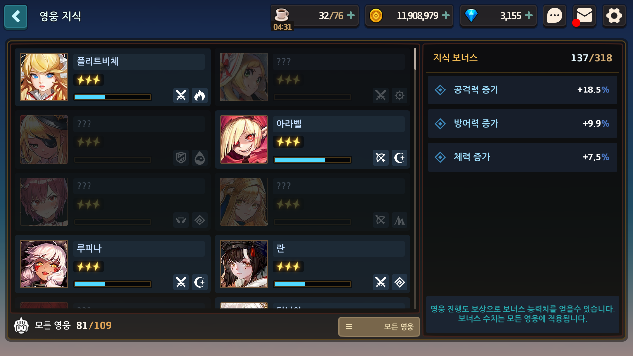무과금이여서 스펙은 안좋습니다.