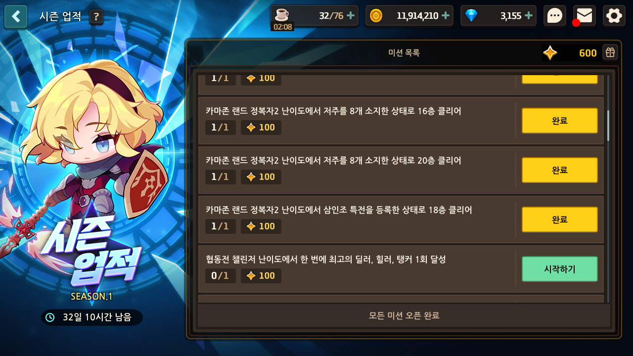 스펙 저보다 좋은신분들 이번 카마존시즌 업적 클리어 할 기회입니다. 도전하세요. 업적 1700까지는 가능합니다.