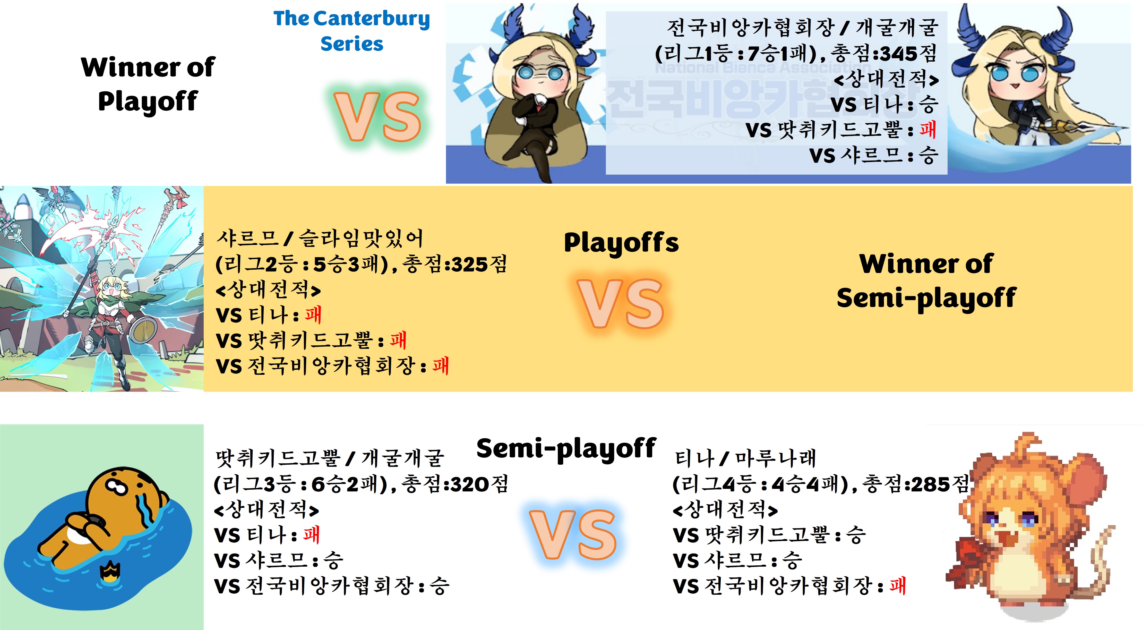 켄터베리 시리즈 : 전국비앙카협회장 / 개굴개굴 VS (플레이오프 승자) : 5판3승제