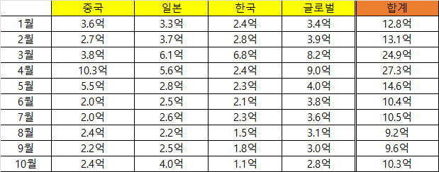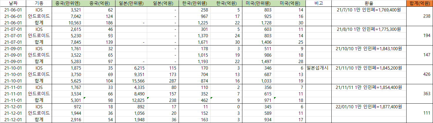 아래는 한참 잘나갈때 정리하다가 만 자료입니다 .. 월매출 426억원도 찍을때가 있었는데...