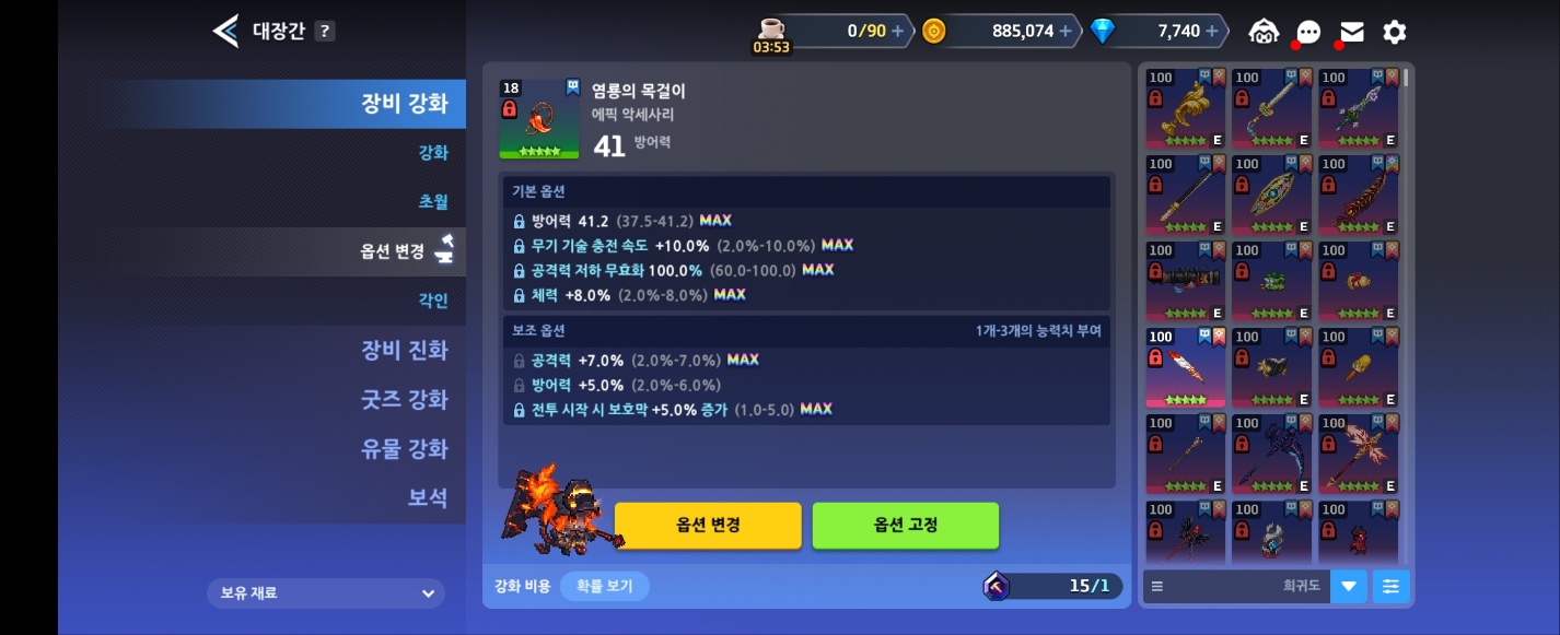 방저무, 공저무 같은거 노릴때마다 100개씩은 기본으로 깨지니 옵고석이 너무 남네요 ㅜㅜ