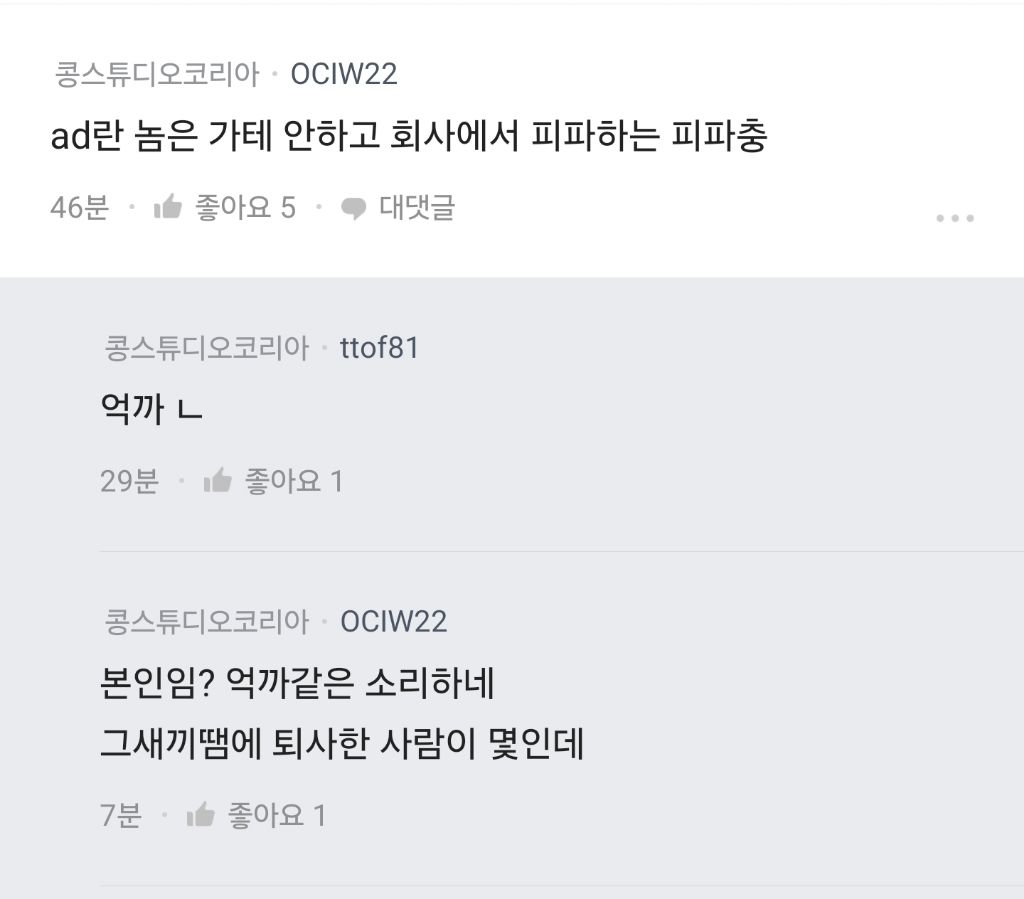 아트디렉터란 놈이 근무시간에 일은 안하고 딴겜이나 하고 자빠져있으니 작성자후루텍|작성시간25.04.17|조회수400 목록 댓글 0 글자크기 작게가 글자크기 크게가 일러를 버러지같이 그려서 내놔도 뭐가 문제인질 모르지김부각 욕을 그렇게 하고 접었는데 니들 하는 짓거리 보면 김부각은 겜잘알이었어 ㅋㅋㅋ 다음검색 현재 게시글 추가 기능 열기 북마크 공유하기 신고 센터로 신고 댓글 댓글 0 댓글쓰기 답글쓰기 댓글 리스트