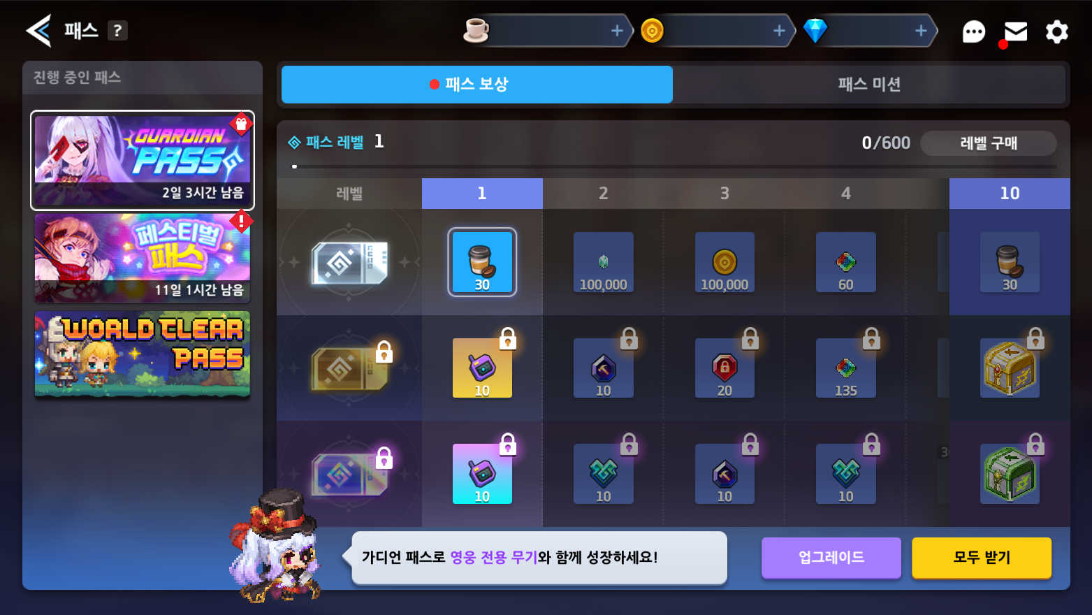 4. 가디언 패스를 골드 패스 또는 플래티넘 패스로 업그레이드하면 추가 보상까지 획득할 수 있어요!