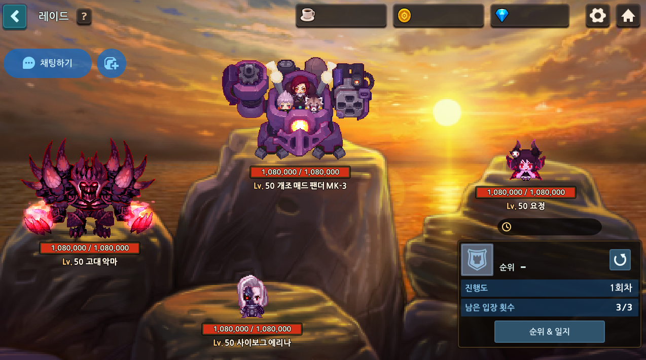 - 길드 레이드는 하루에 3번으로 입장 횟수가 제한되어 있습니다.