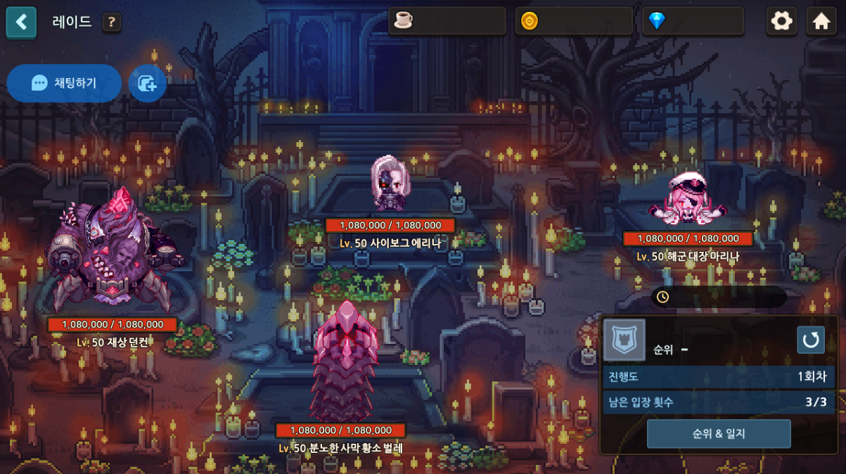 - 길드 레이드는 하루에 3번으로 입장 횟수가 제한되어 있습니다.