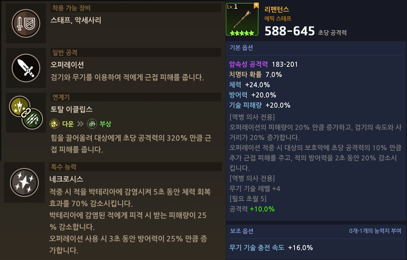 - 역병 의사의 전용 무기인 리펜턴스가 추가됩니다.
