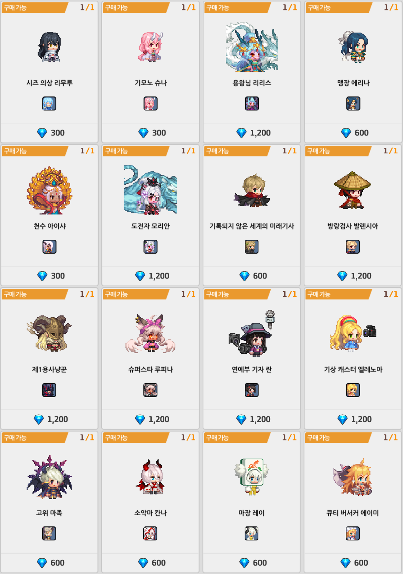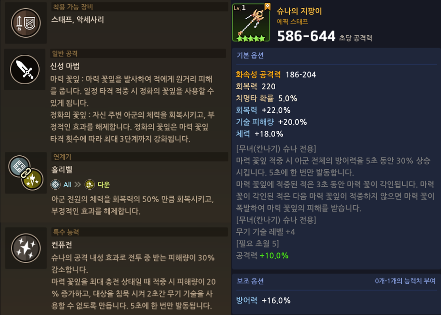 ※ 무녀(칸나기) 슈나와 슈나의 지팡이는 이벤트의 보상으로만 획득할 수 있습니다.