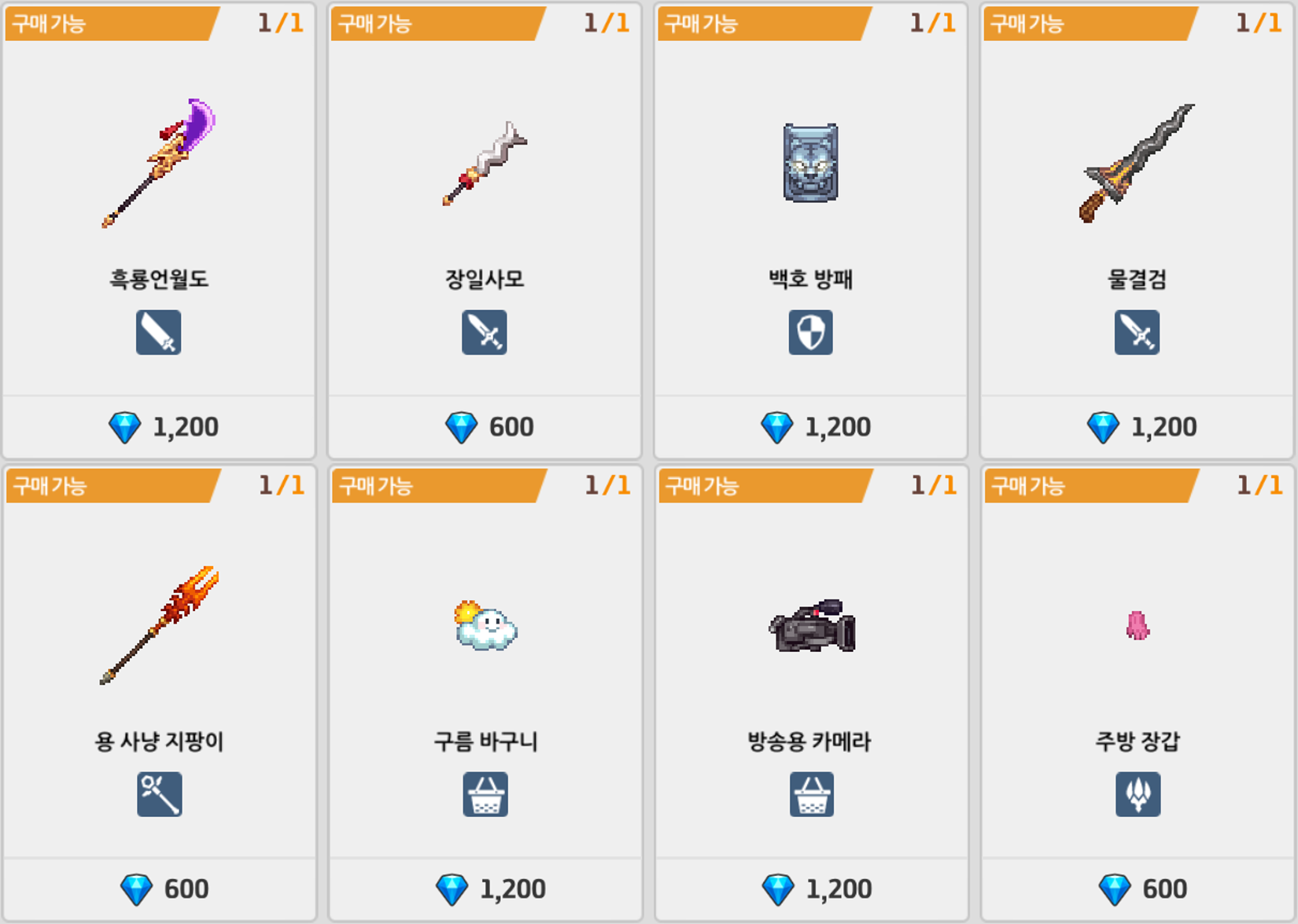 | 유니크 영웅 or 전용 무기 중 1개 선택 |