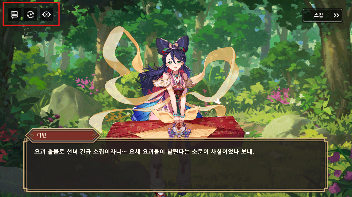 ㄴ 자동 재생: 해당 버튼을 터치하면 음성, 대사, 연출을 자동으로 재생합니다.