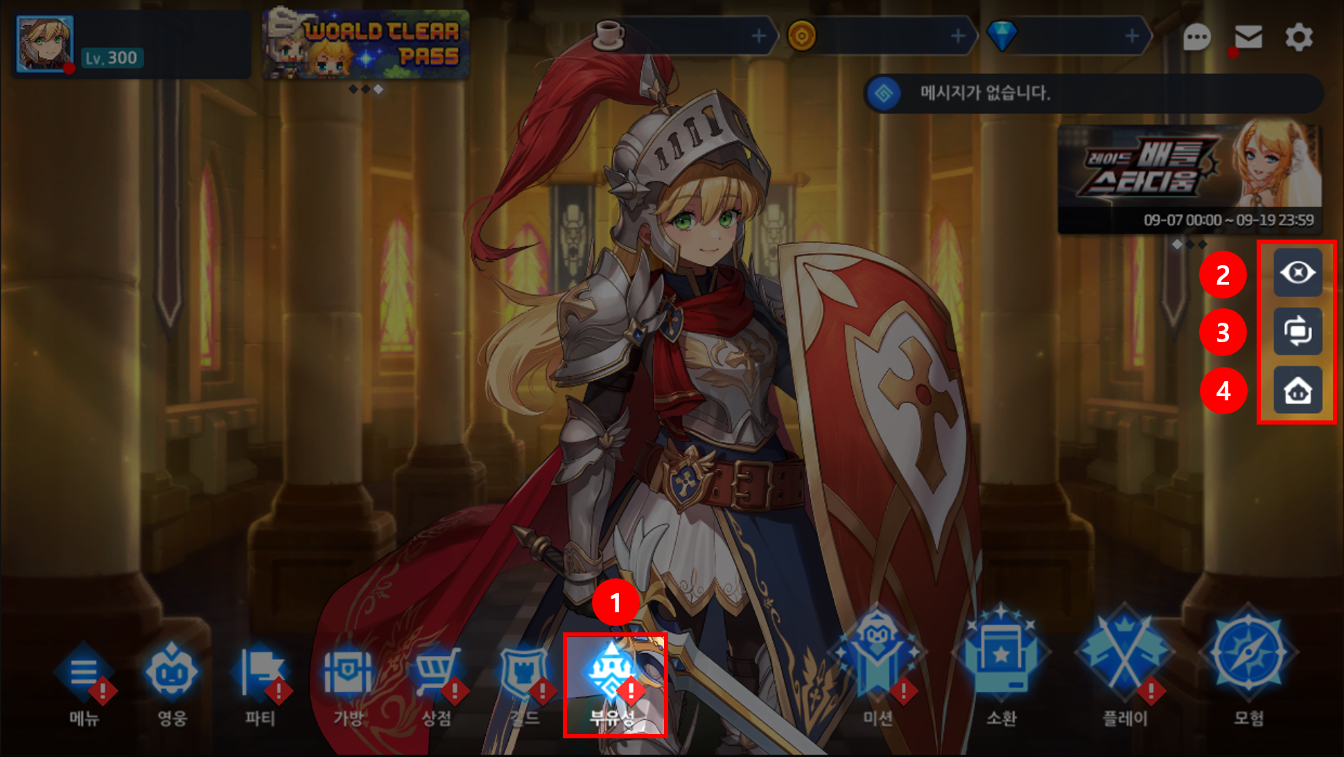 ① 일러스트 로비 화면과 부유성 로비 화면을 전환할 수 있는 버튼이 추가됩니다.