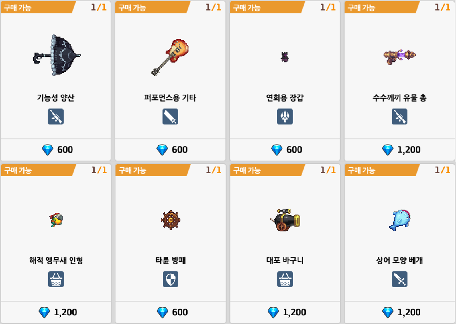 | 소환 컨트롤러 100개 | 유료 젬 1,000개 |