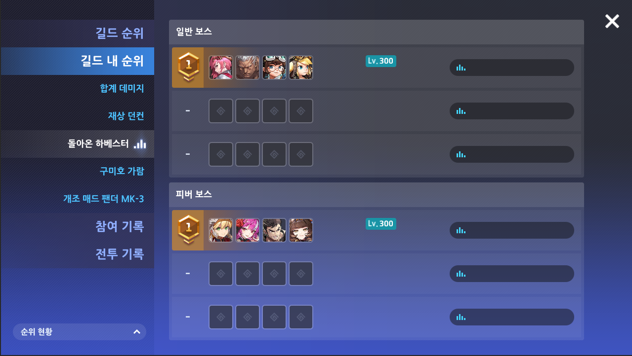 - 길드 내 순위에서 일반 보스와 피버 보스의 전투 기록을 확인할 수 있도록 변경됩니다.