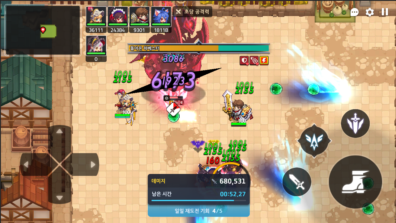 | 6일 차 | 대왕 신록 슬라임 (지) | 부상 |