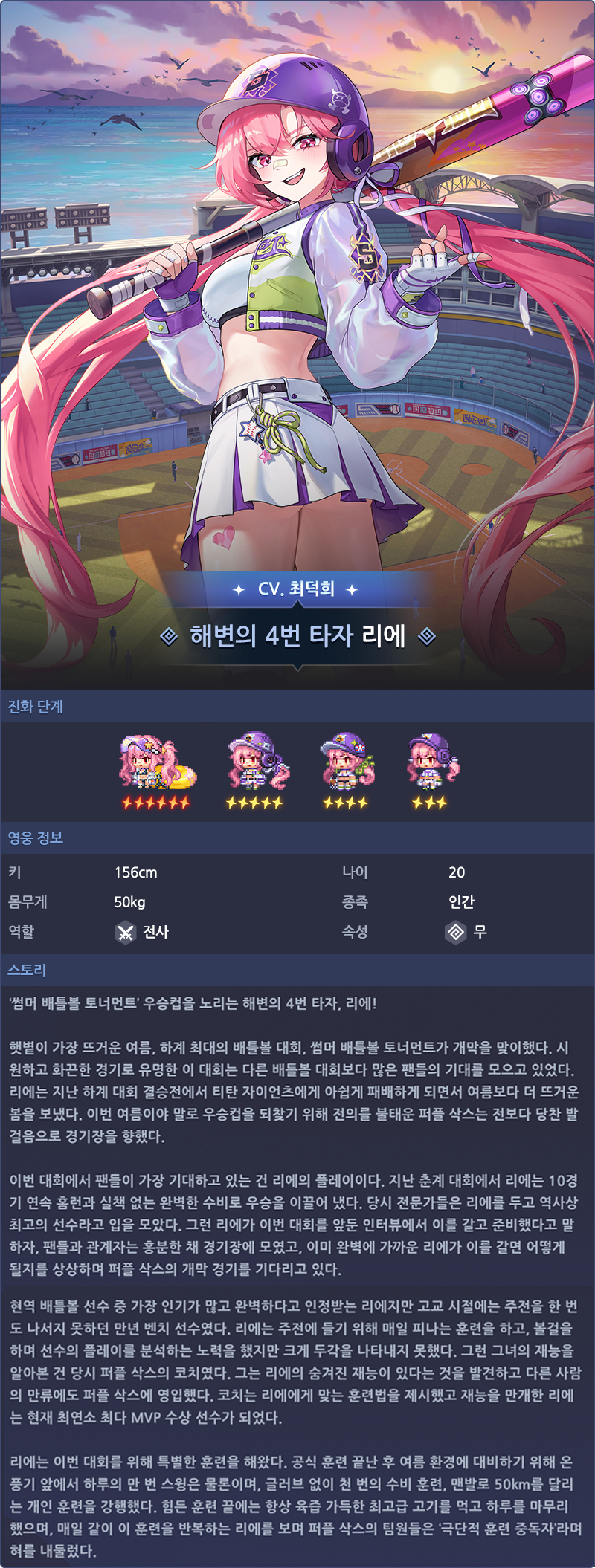 - 신규 영웅인 해변의 4번 타자 리에가 추가되고 한국어 보이스가 함께 추가됩니다. (CV. 최덕희)