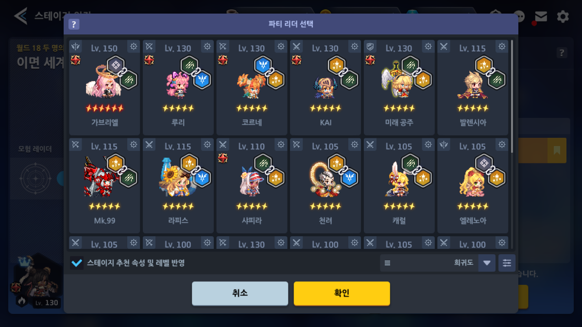 - 파티 리더 선택 시 클래스와 영웅들의 성장 상태, 장비를 고려하여 파티원을 자동적으로 편성합니다.