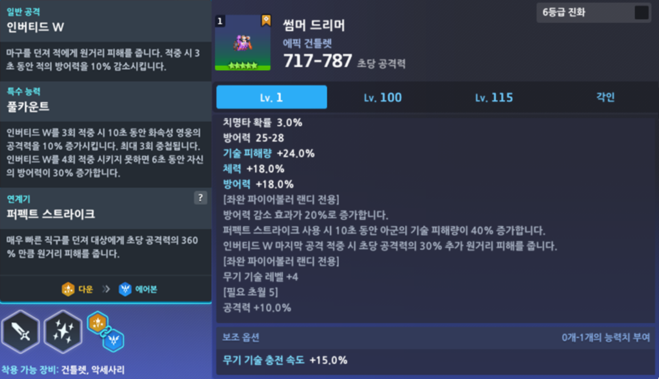 | [일반 공격 강화] ㄴ 인버티드 W의 속도와 사거리가 증가합니다. | |