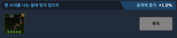 [파티] 방어력 +30% [파티] 외로운 왼쪽 귀 소지 시 공격력 +90% | [파티] 방어력 +20% [파티] 외로운 왼쪽 귀 소지 시 공격력 +80% | |