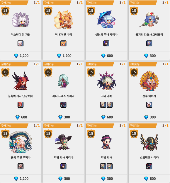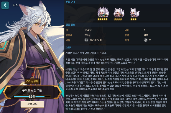 - 유니크 영웅 성장 패키지(구미호 신선 가람)