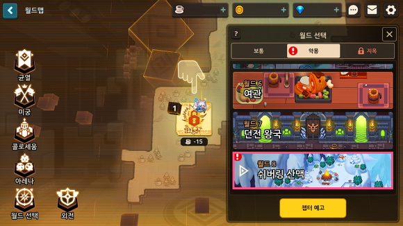 - 가디언 신본부를 이용하기 위해서는 월드5 메인 퀘스트를 먼저 클리어해야 합니다.