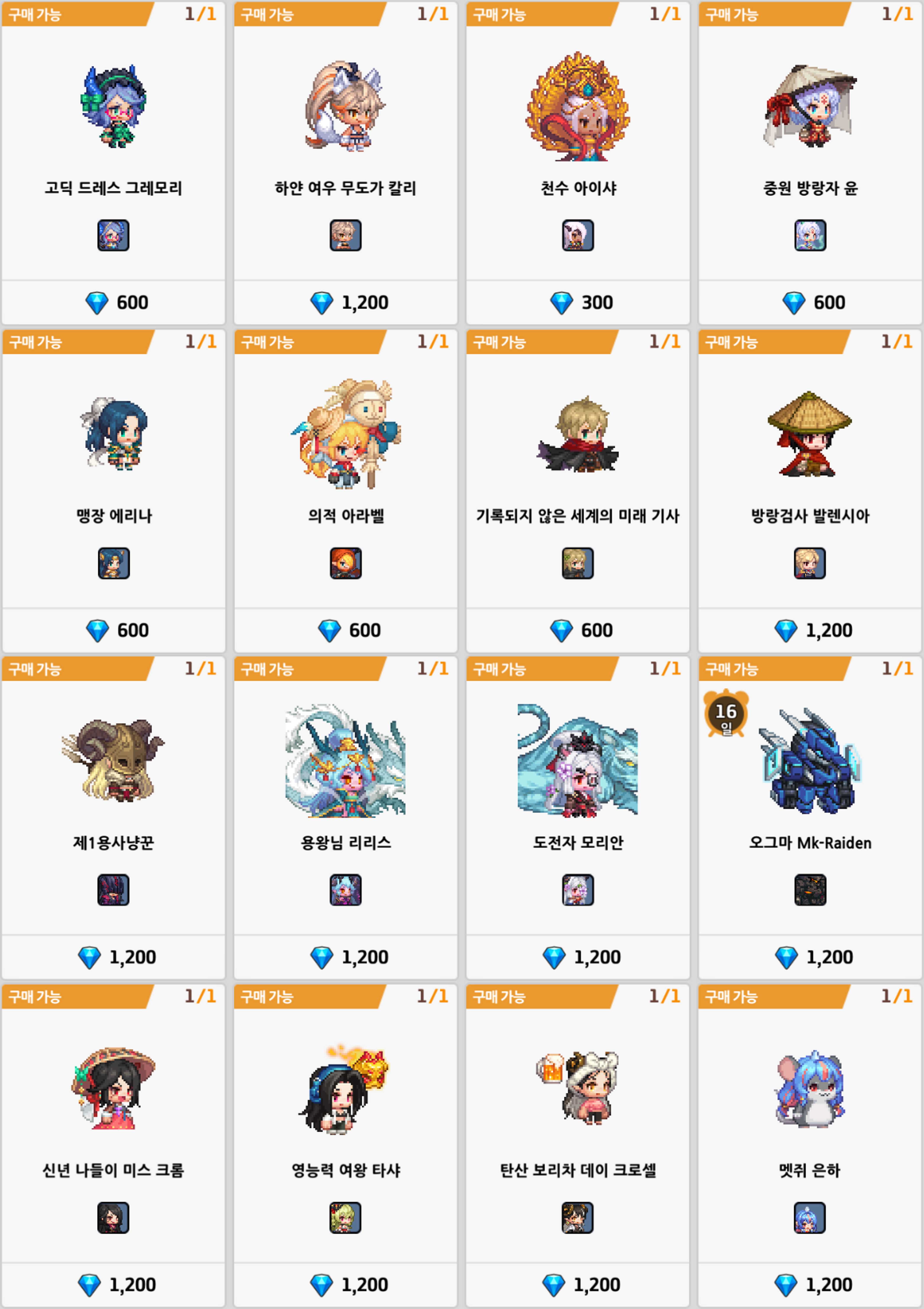 | 유료 젬 1,000개 | 유료 젬 1,000개 |