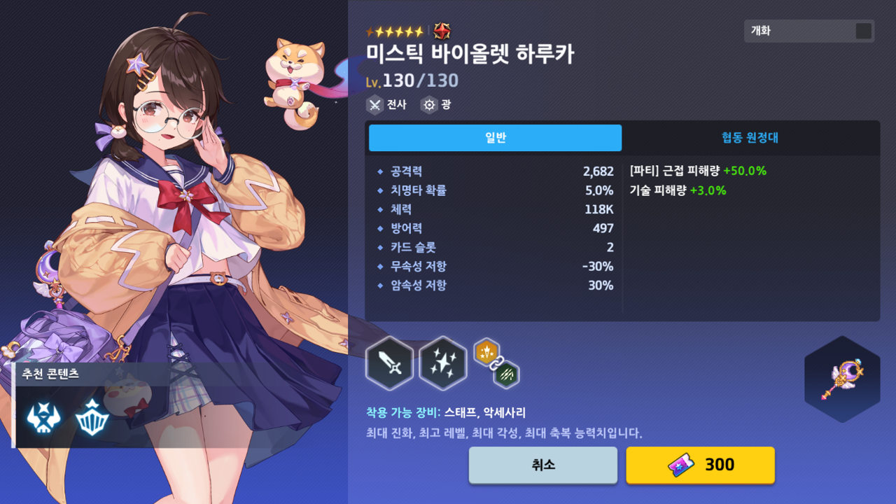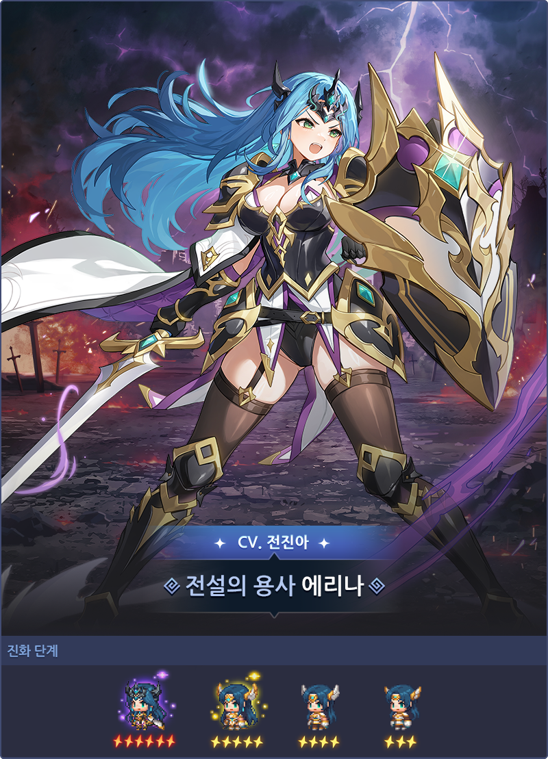 | 개화 변경점 | [리더 기술 추가 및 능력치 상승] - 최후의 승리 ㄴ 사용 시 초당 공격력의 450% 만큼 근접 피해를 주고, 아군 전원의 방어력을 240초 동안 20% 만큼 증가시킵니다. |