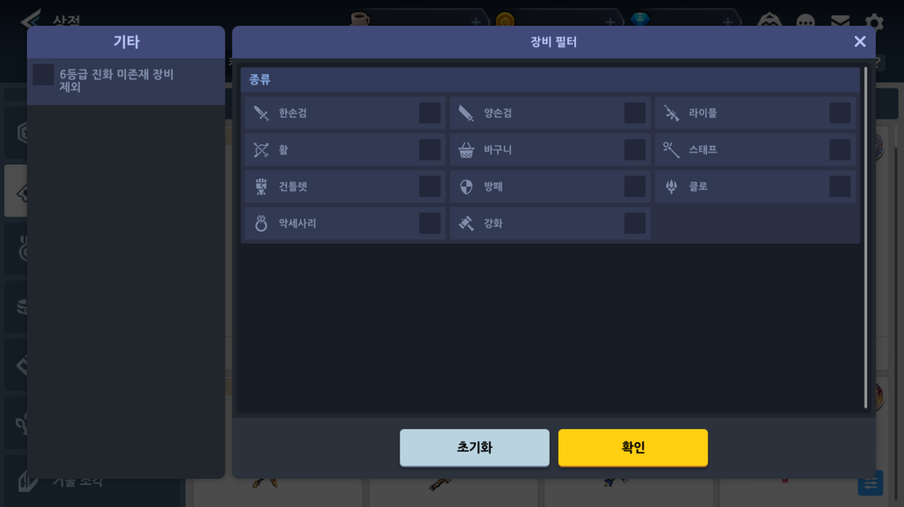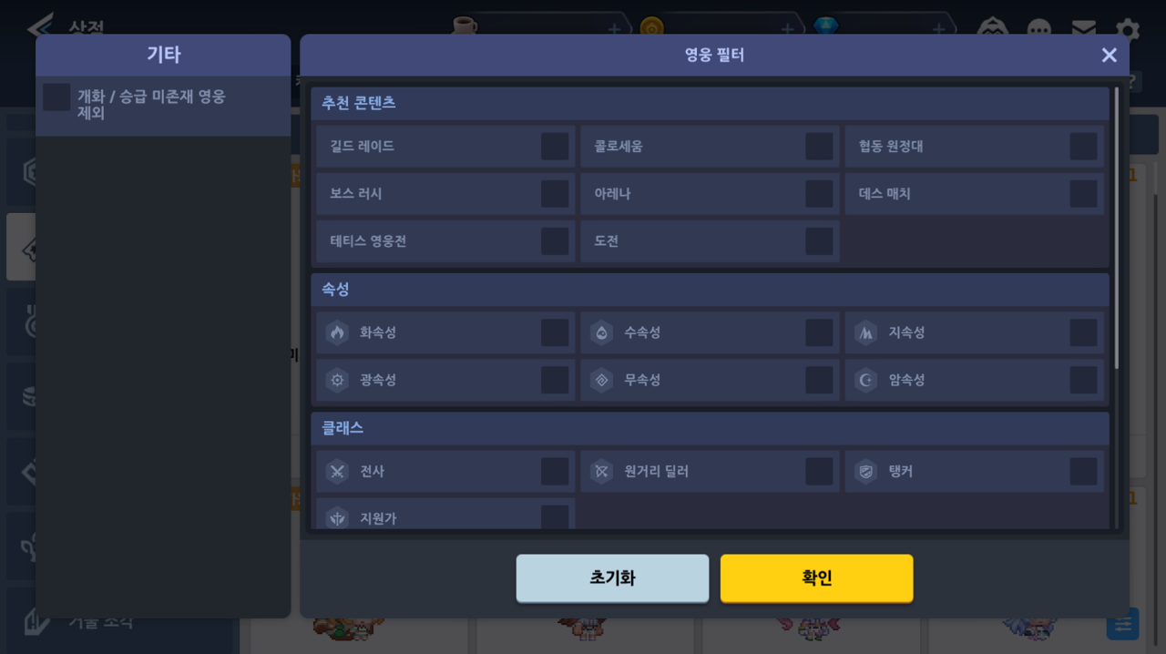 - 영웅 탭과 장비 탭에 필터 기능이 추가됩니다.