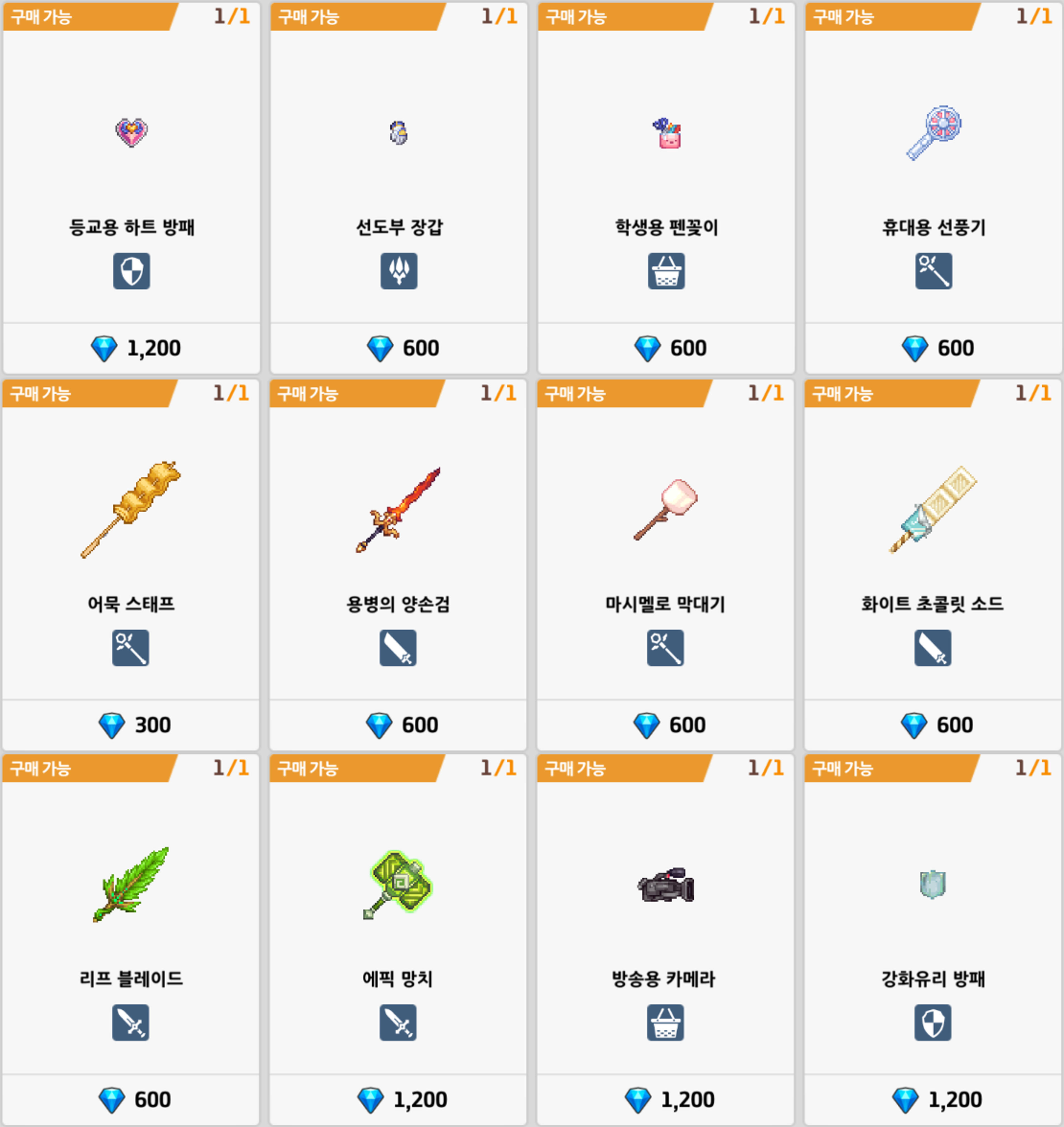 | 예비 스태미나 1,000개 | 1,000,000 골드 |