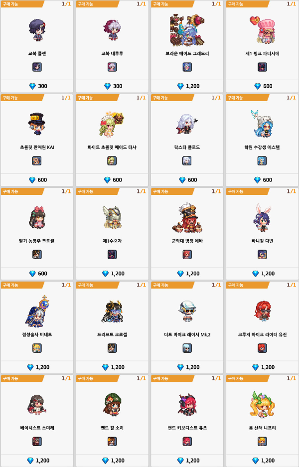 | 선택 소환 컨트롤러 20개 | 유료젬 1,000개 |