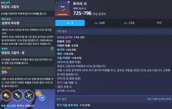 ㄴ 선택 가능한 에픽 전용 장비: 토아의 서, 발뭉