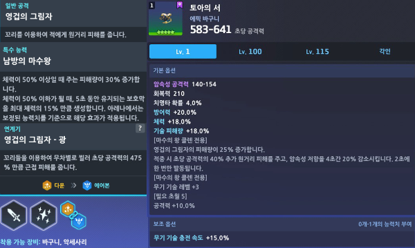 | [무기 기술 강화] 판정 범위가 17% 증가하고, 초당 공격력의 290% 만큼 원거리 피해를 줍니다. | |