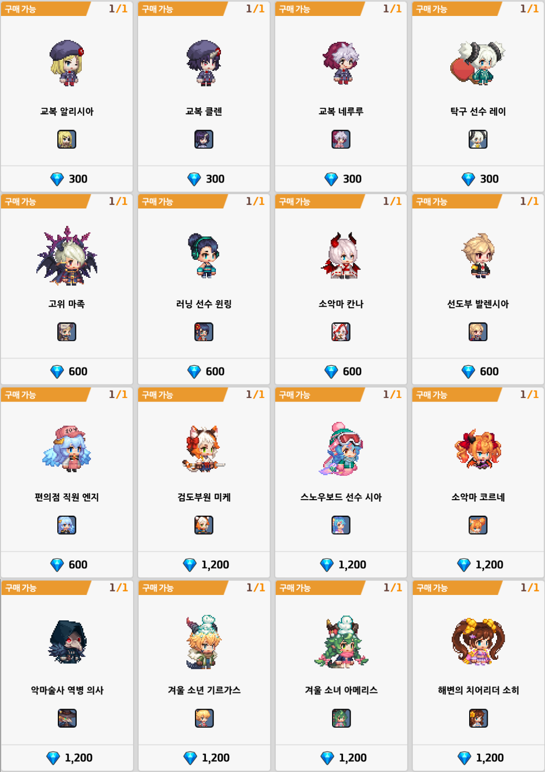 | 릴레이 #1 | 6,000원 | 유료젬 1,200개 소환 컨트롤러 10개 선택 소환 컨트롤러 5개 |