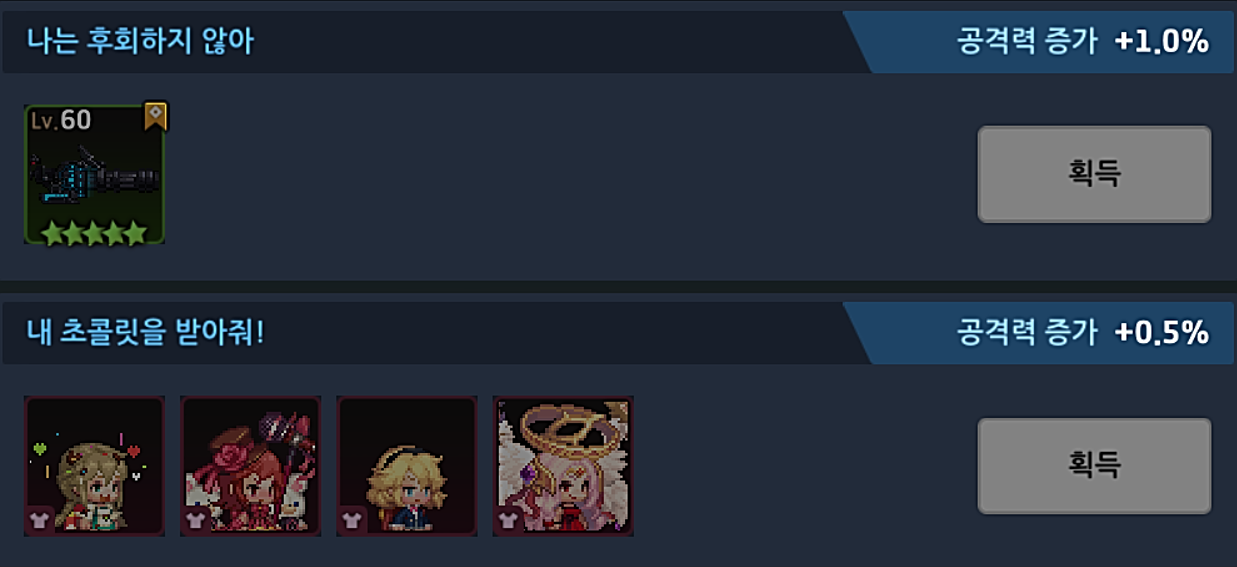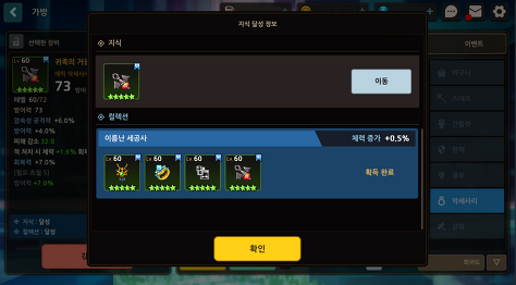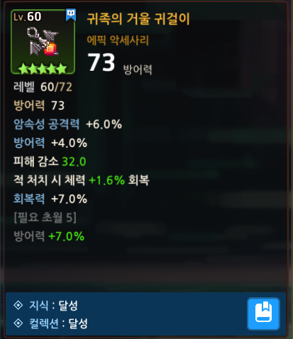 ㄴ 지식 달성 정보에서 아이템의 등급별 지식 획득 및 컬렉션 획득 여부를 확인할 수 있습니다.
