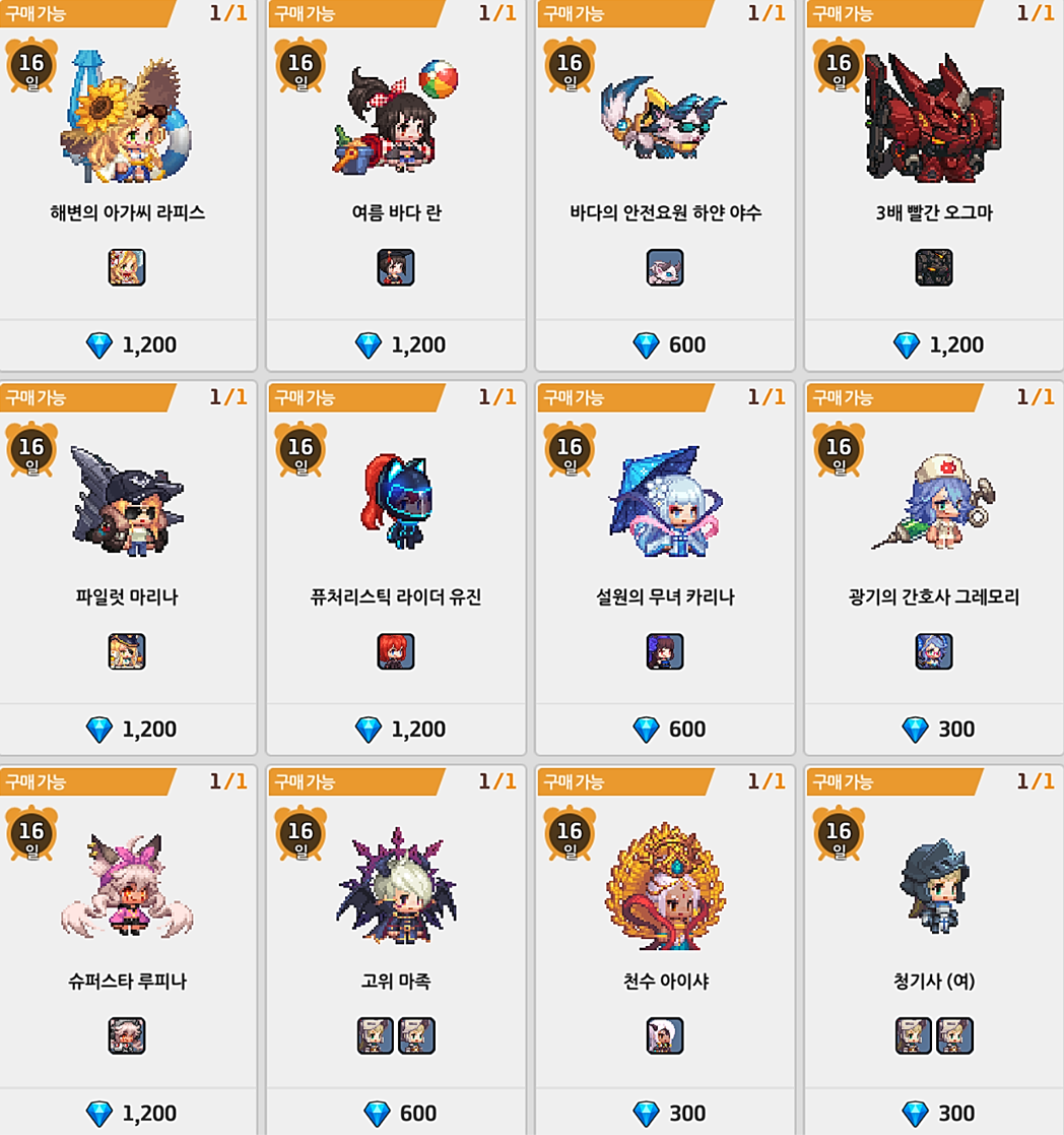 - 영웅 진화석 상품들이 더 이상 판매되지 않습니다.