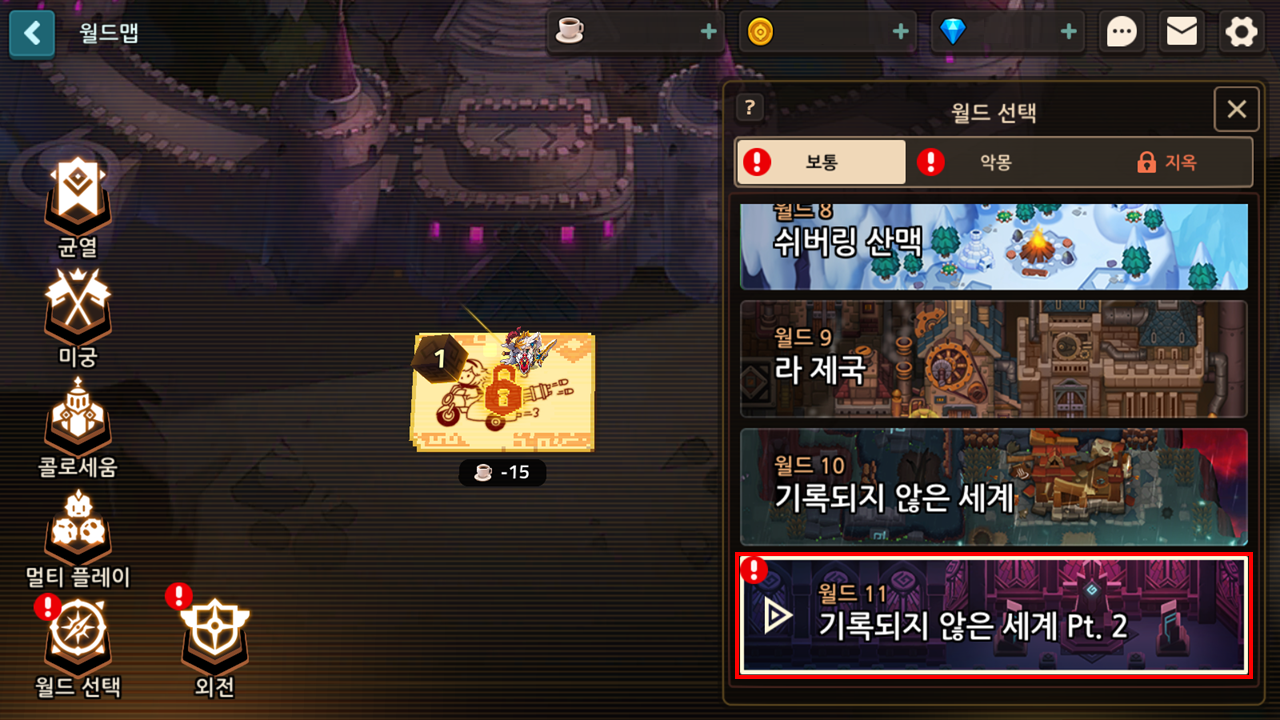 ※ 월드 11 '기록되지 않은 세계, Part2'에서는 전투 불가 시 부활 횟수가 제한됩니다.