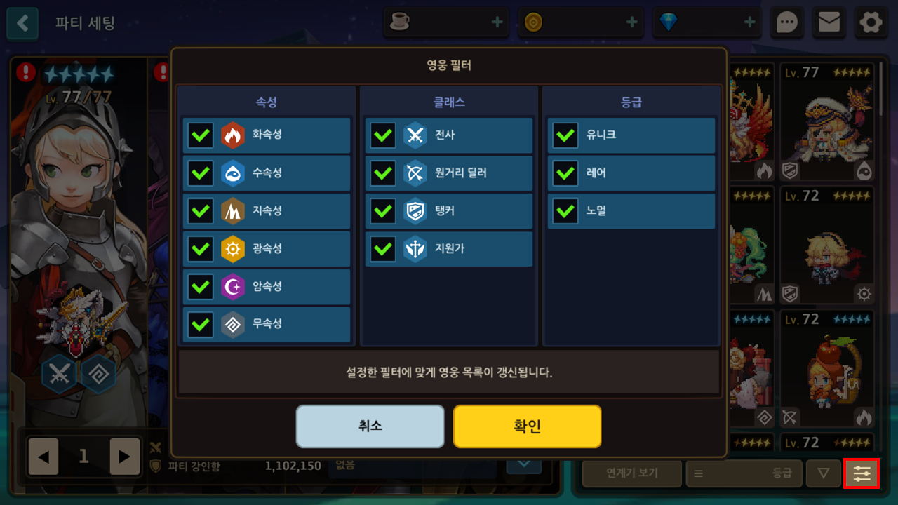 - 전투를 시작하기 전에 미리 영웅을 세팅해주세요.