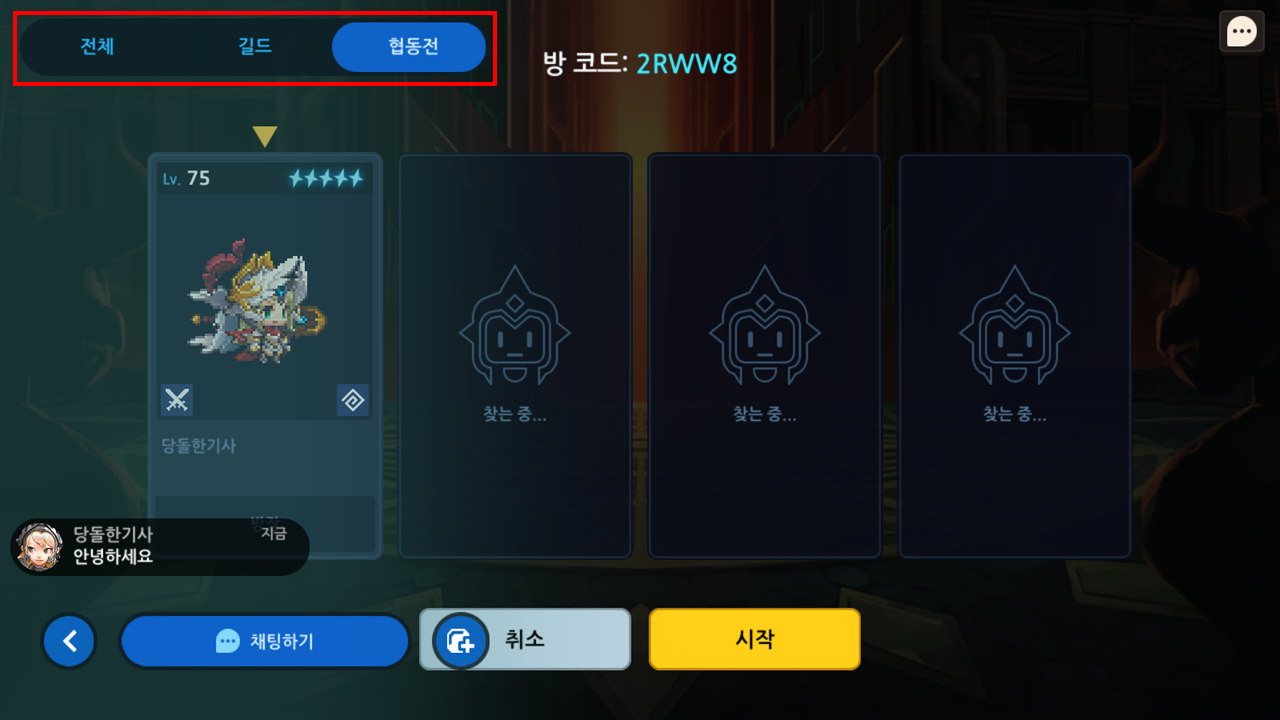 - 매칭된 기사님은 각자 출전 영웅을 선택합니다.