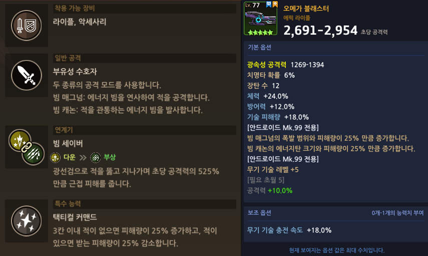 - 안드로이드 Mk.99의 전용 무기인 오메가 블래스터 가 추가됩니다.
